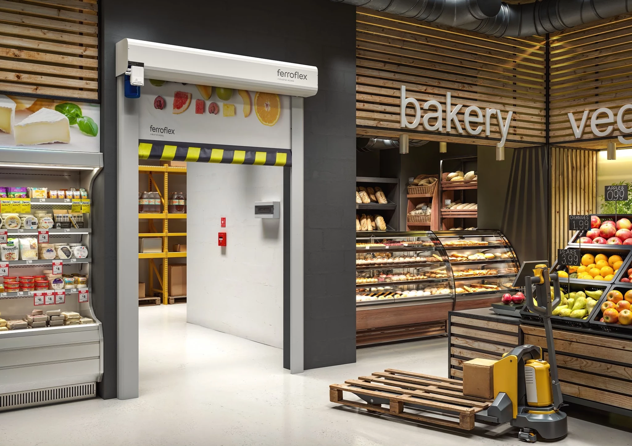 Los supermercados son espacios con un alto volumen de tránsito, donde la eficiencia operativa y la seguridad deben convivir con el confort de clientes y trabajadores. Desde las zonas de carga y descarga hasta los accesos a áreas internas, contar con soluciones adaptables es clave para optimizar los flujos de trabajo, mantener las condiciones ambientales y cumplir con la normativa vigente. En este contexto, Ferroflex ha diseñado dos soluciones específicas para supermercados.